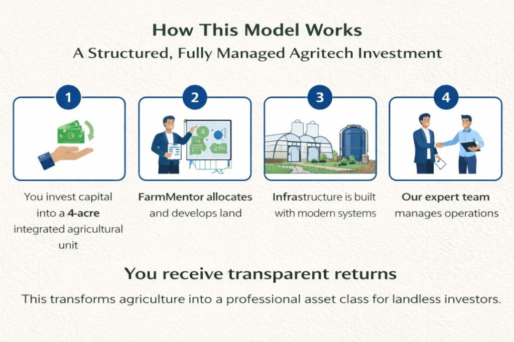 FarmMentor’s Smart Investment Model allows you to participate in profitable agricultural ventures without owning farmland or managing daily operations.