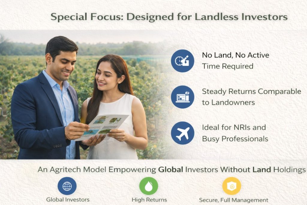 This transforms agriculture into a professional asset class for landless investors.